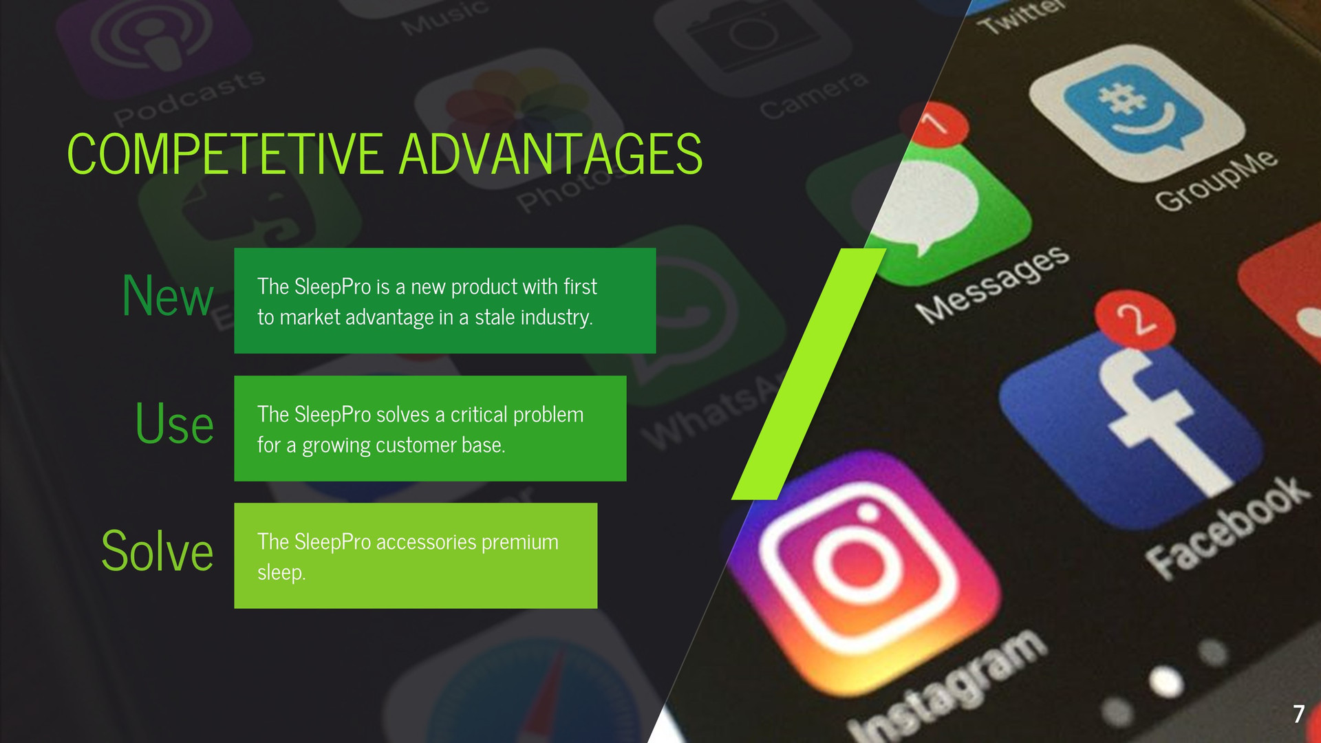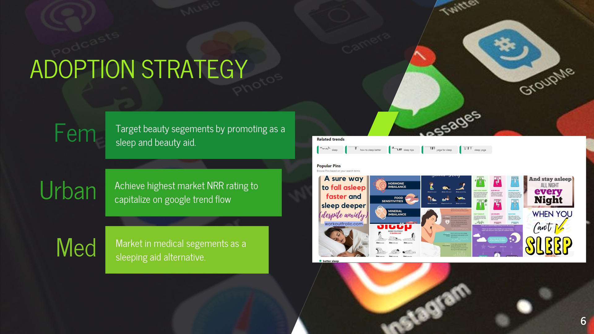 Growing trends in urbanized living has created a vastly louder environment for sleep. Growing customer segments are looking for a sleep specific innovation.